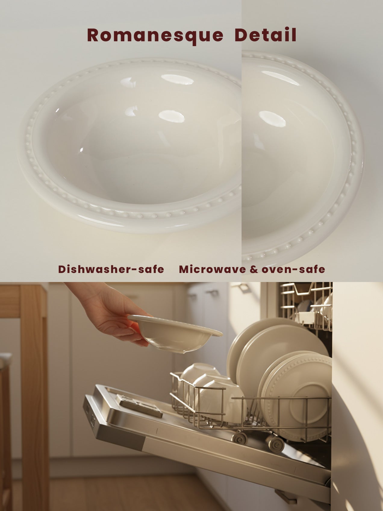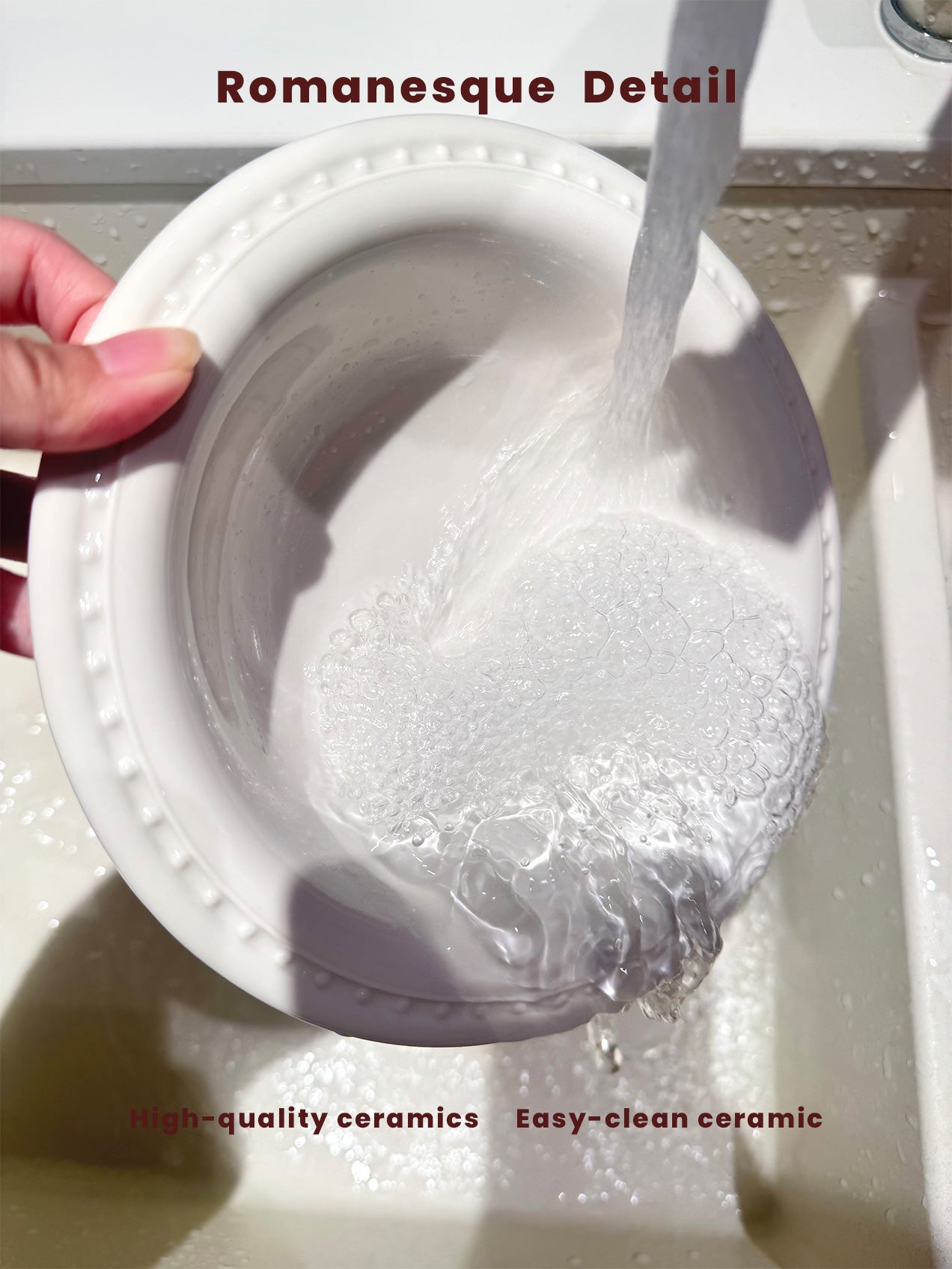 Porcelain Bowl: Dishwasher- and microwave-safe; stain-resistant and easy to clean. Avoid metal utensils that may scratch the surface.